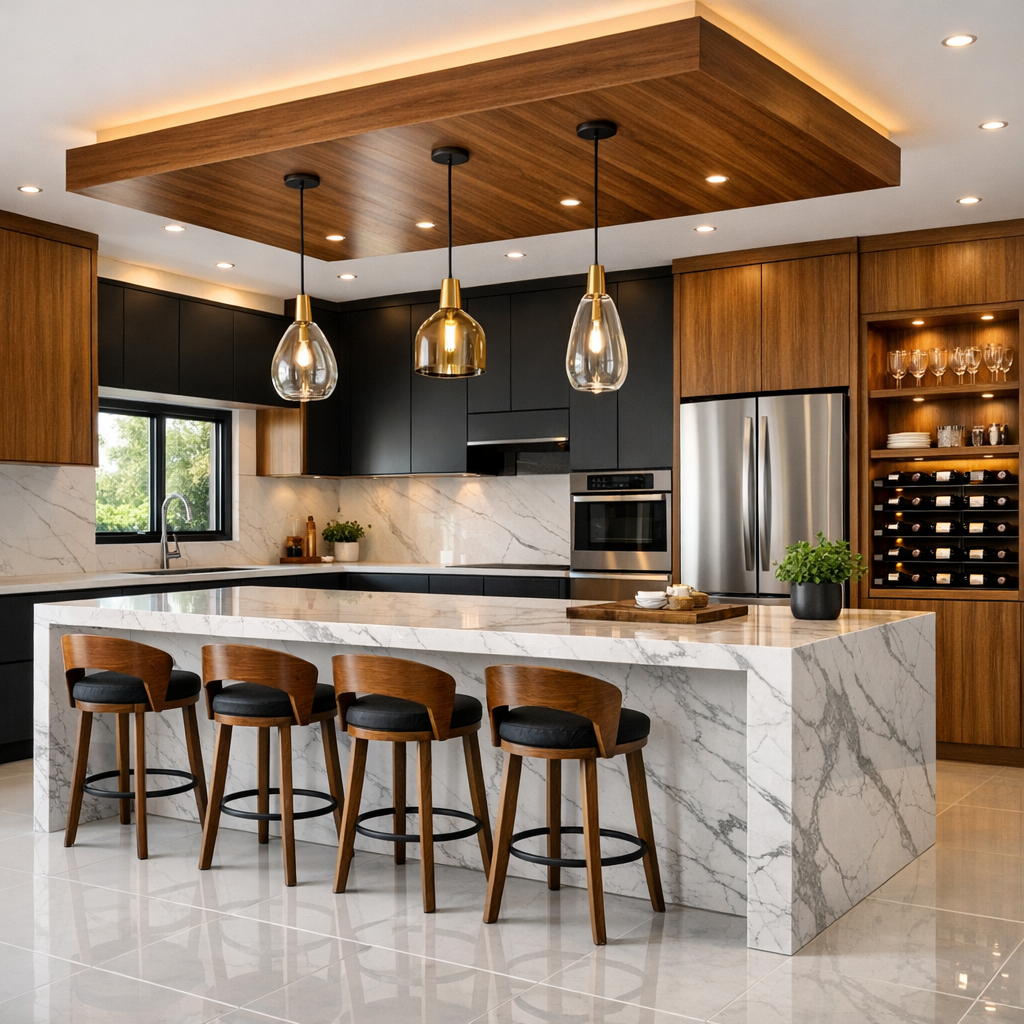 Creating a kitchen that looks high-end yet feels welcoming is key. An Elegant 5 Modern Kitchen with Marble Island and Wood Details is perfect for your home. It combines the cool look of marble with the warm feel of wood, making your kitchen timeless. Elegant 5 Modern Kitchen with Marble Island and Wood Details When using these top materials, planning is crucial. You need to make sure your functional zones work well while showing off your surfaces. Whether you’re redoing your kitchen or starting from scratch, these elements will make it luxurious. This guide will help you achieve this look in your home. Key Takeaways Combine cool stone surfaces with warm timber to create visual balance...................